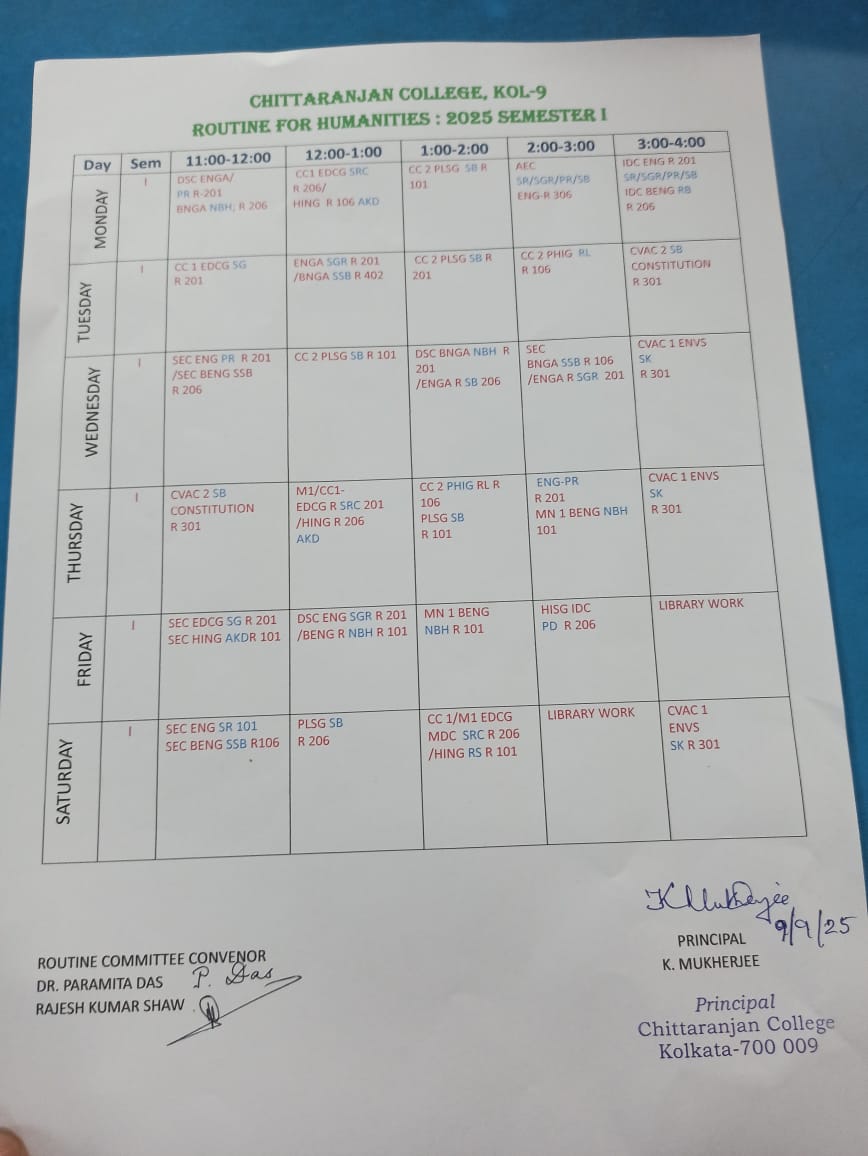 • Routine for Semester-I Students 2025 – Chittaranjan College